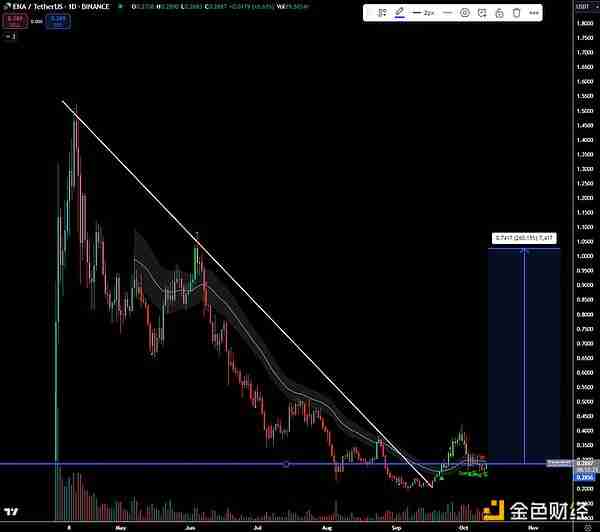 尽管ENA是本周期中**一款具有明确 PMF 的主要新产品,ENA在 Coingecko 上甚至没有进入前 100 名。从技术分析的角度来看,ENA 的 HTF图表看起来非常干净。加上基本面驱动因素 通胀压力**,我可以轻松预见ENA 恢复 1 美元的水平。这甚至不会让ENA的市值达到相当于$WIF的市值,仅达到POPCAT流通供应量近期达到的15亿美元高位。