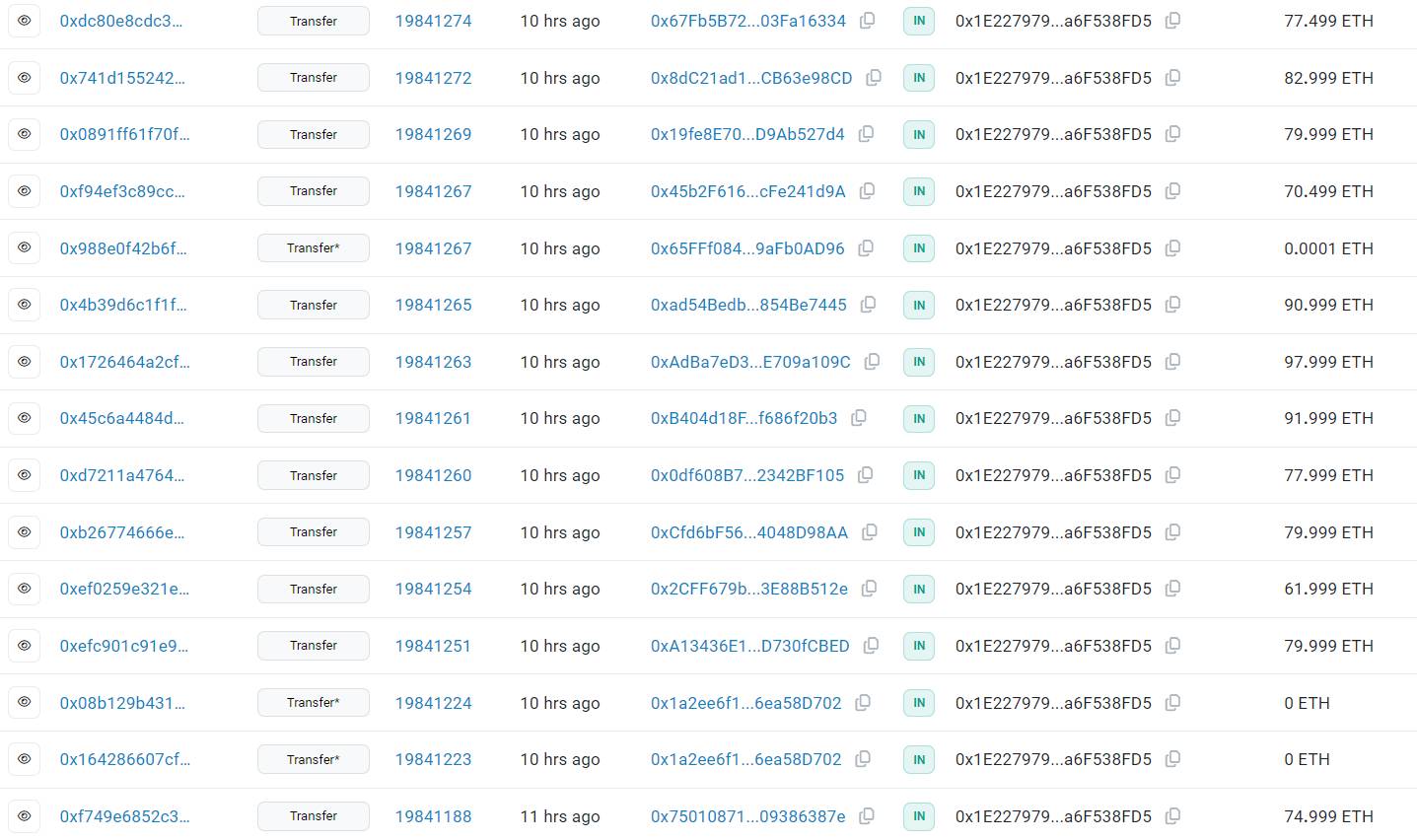 根据链上数据,受害者的钱包于 5 月 10 日下午 03:00(越南时间)开始收到资金。此后,一系列不同的钱包地址向受害者发送了 ETH。窃贼使用 Coin Mixer 转移 ETH 来隐藏自己的身份。