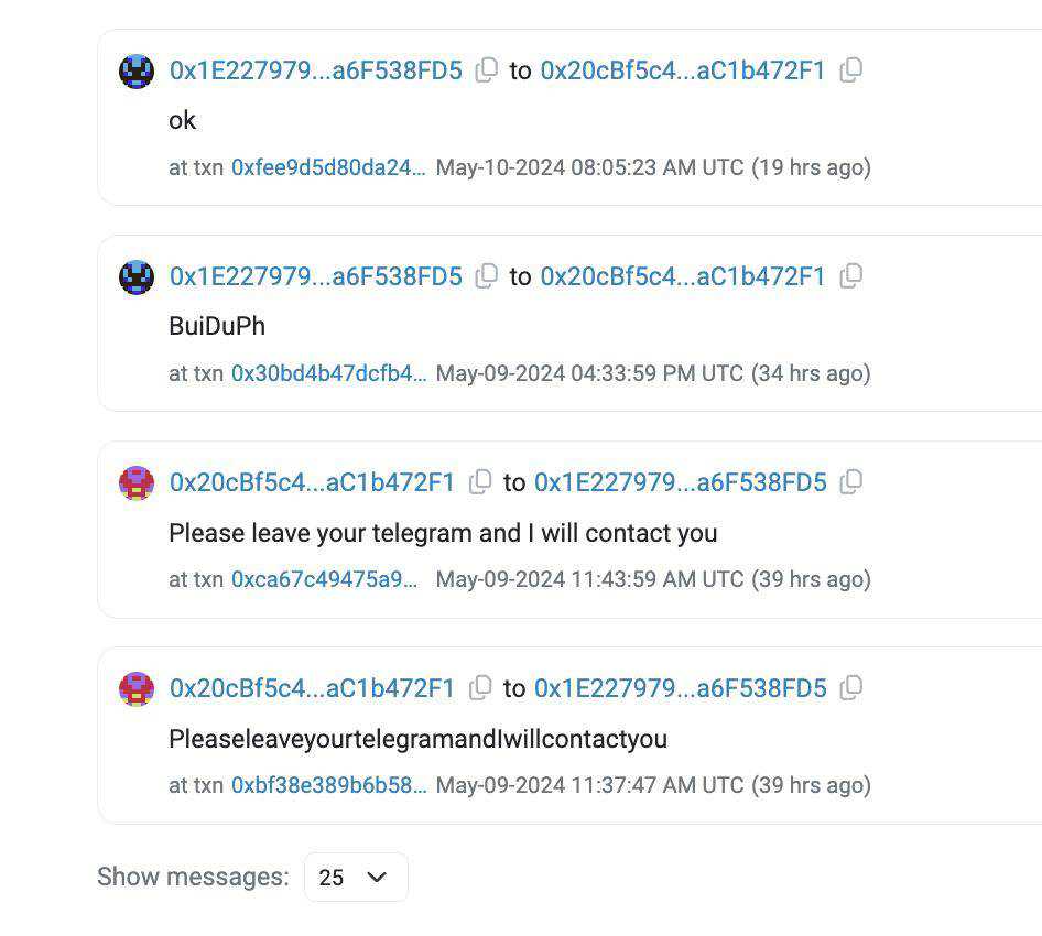5月4日,受害者要求攻击者返还90%的钱,并同意让攻击者保留10%。经过一段时间的沉默后,攻击者于 5 月 9 日突然返还 51 ETH 并请求通过 Telegram 进行通信。