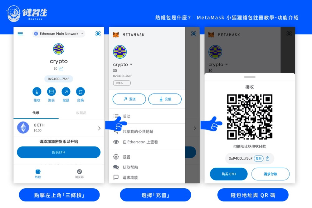 MetaMask 常用功能:入金(取得自己的钱包地址、QR 码)*