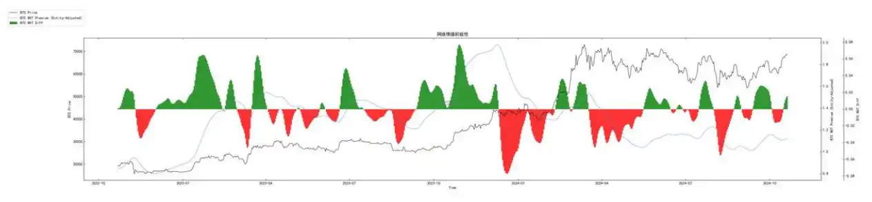 衍⽣品⻛险系数提⽰到达红⾊区域,再结合本周仍观测到在当前价位 68K 附近有⼤量的筹码换⼿和累积,预期在当前价位⼤幅度的回调概率较低。
