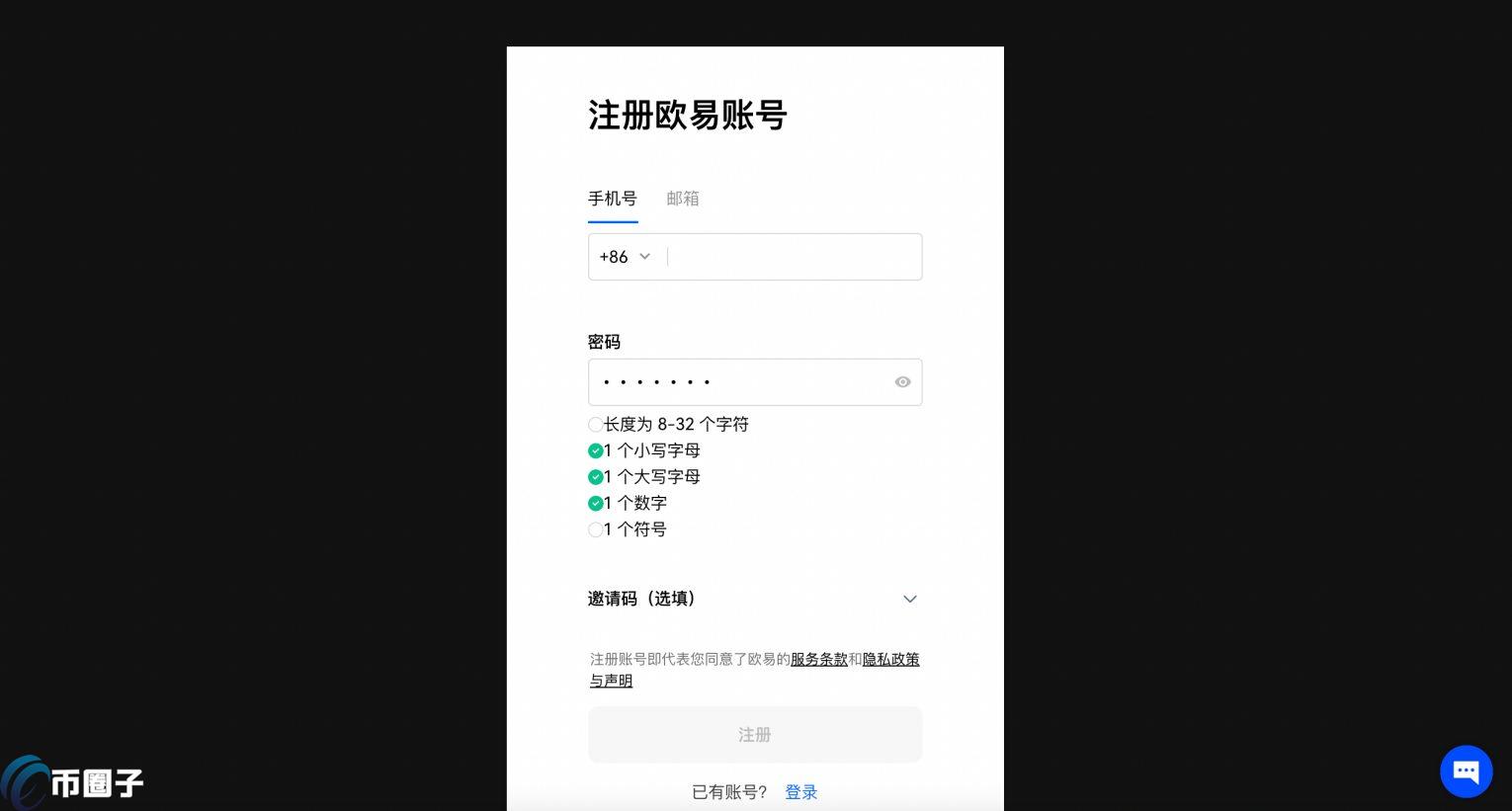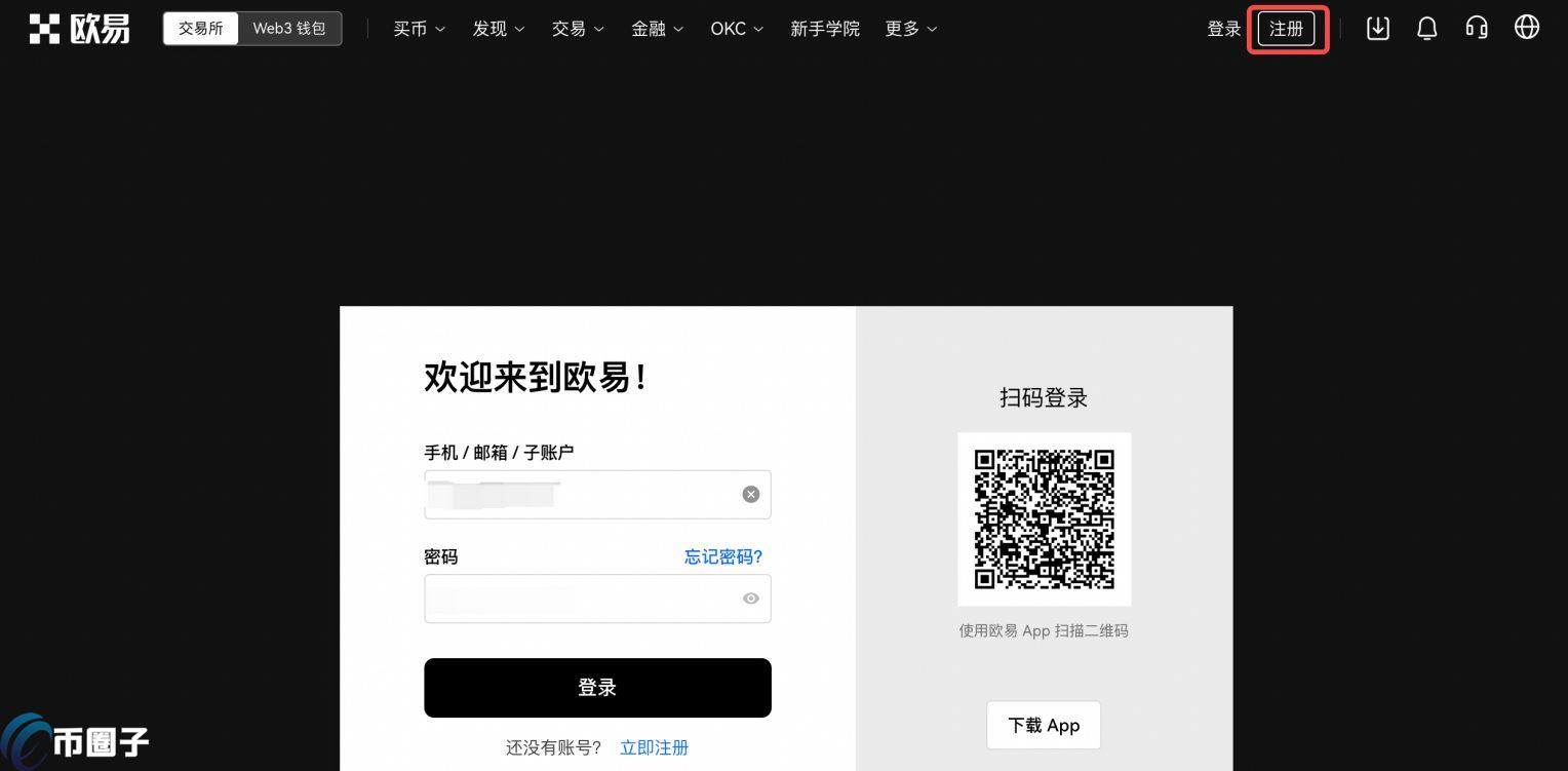 1.打开欧易官网,点击右上角【注册】按钮进入注册页面。