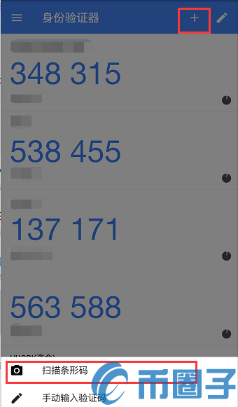 iOS(苹果)手机用户:请打开谷歌验证器APP,点击右上角" ",选择"扫描条形码"。