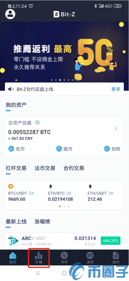 3.返回到首页,选择底部【行情】按钮,进入行情列表界面。