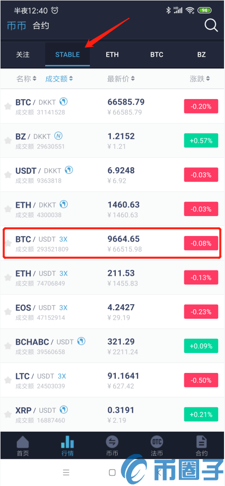 比如您想用USDT去兑换BTC,直接点击STABLE列表下的BTC/USDT交易对即可。
