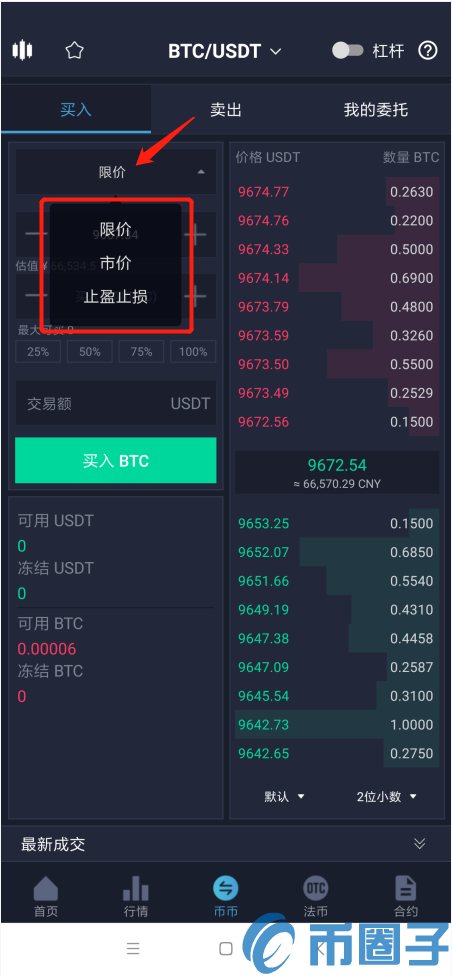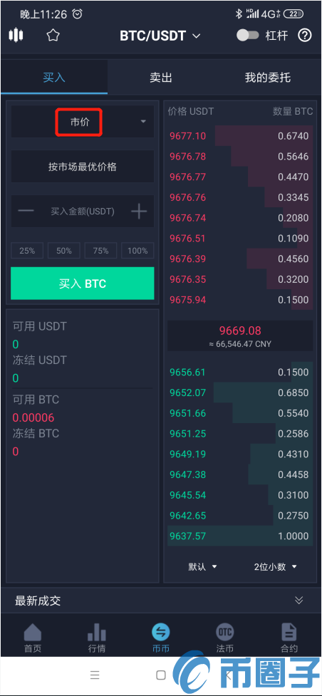 8. 所谓的市价交易就是指不设定买入价格,按照当时的市场价格买入或卖出,只需输入想买入的总金额或卖出的总量即可: