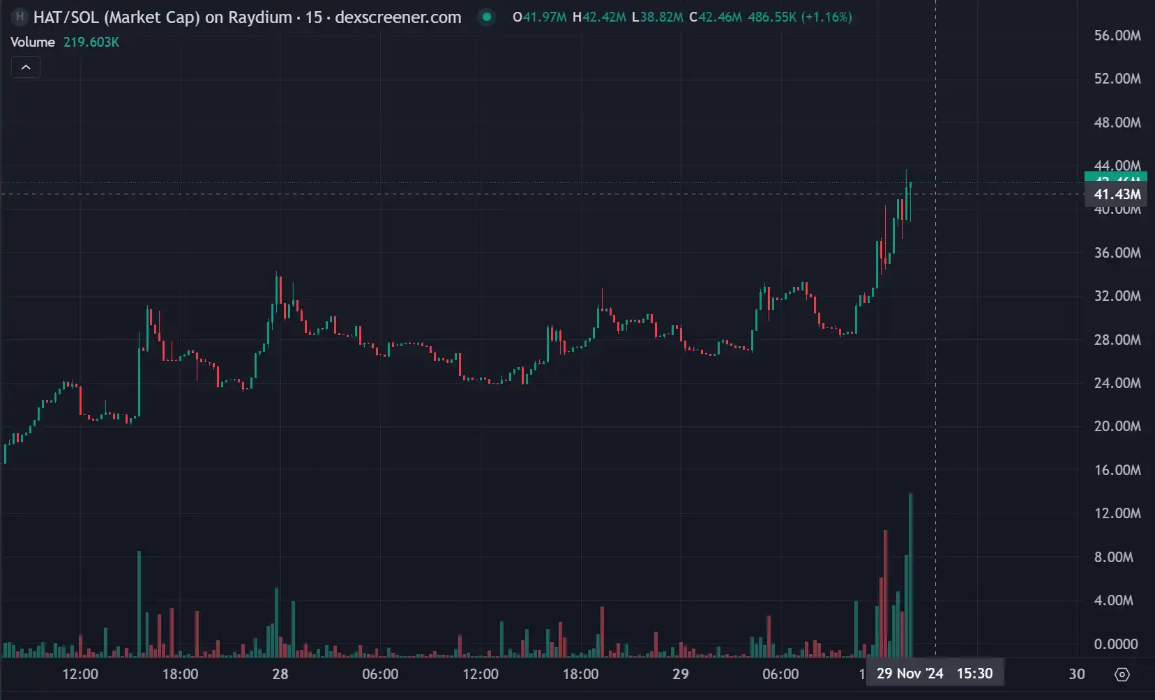 今天许多在 Solana 榜单上的热门**与圣诞节相关,随着圣诞节临近市场进入了一个火热的赛道,许多新币种纷纷涌现。圣诞老人** Rizzmas 在 24 小时内迅速上涨,市值接近 1 亿美元;GRINCH **借着 Rizzmas 的热度,在两天内波动上涨,市值**曾达到 2100 万美元;Chill GUY 则通过在 TikTok 等平台的引流,保持了高热度,因此 Chill Grinch 也借势上涨,在发币后的四小时内,涨幅一度达到 69 倍。