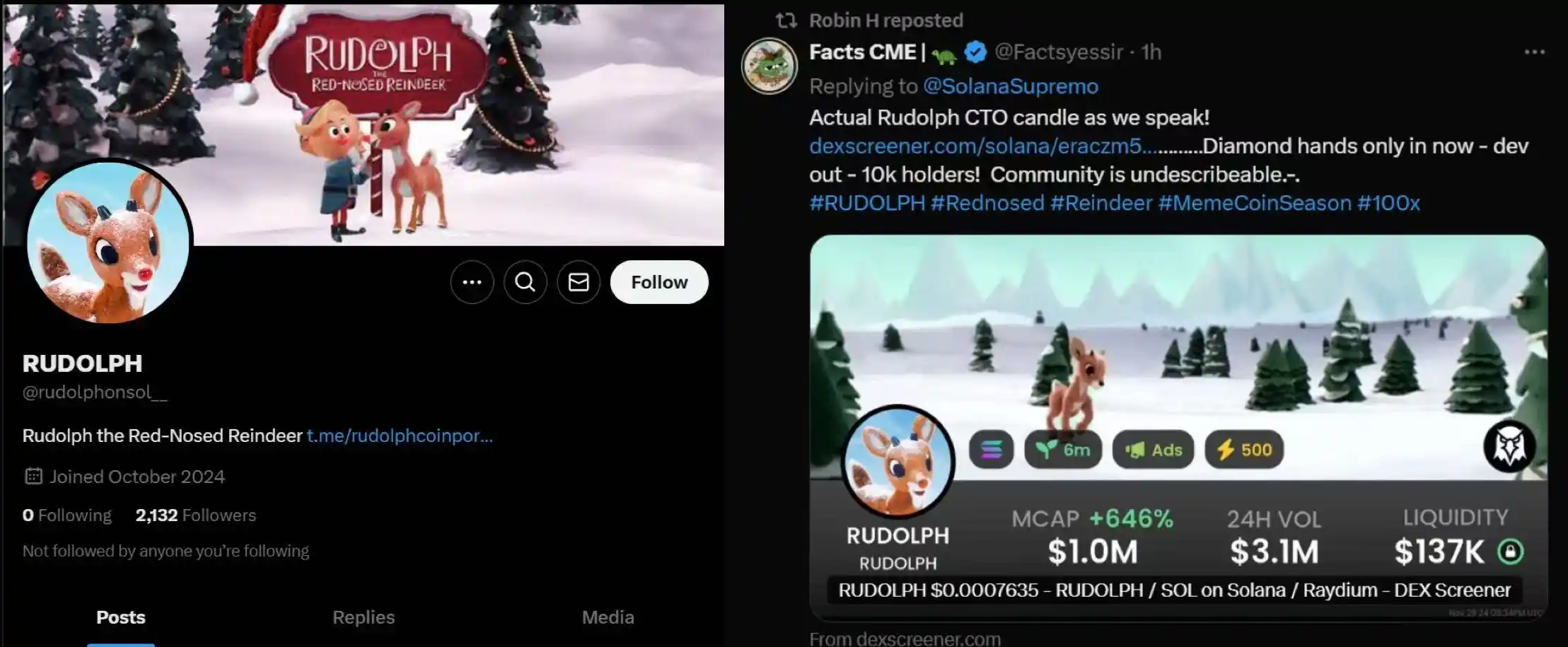 目前,Rudolph 的 CTO(**技术官)团队刚刚组建完成,仍处于早期发展阶段,不过社区的活跃度还不错。作为圣诞老人最喜爱的 meme 币,Rudolph 在节日的炒作下,可能会迎来一波爆发式增长。