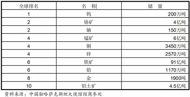 除了煤哈国还有钨、铀等全球排名靠前的矿产资源。