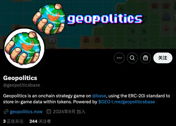 Geopolitics 是一款 Base 上的策略游戏,使用 ERC-20i 标准将游戏内数据存储在**中