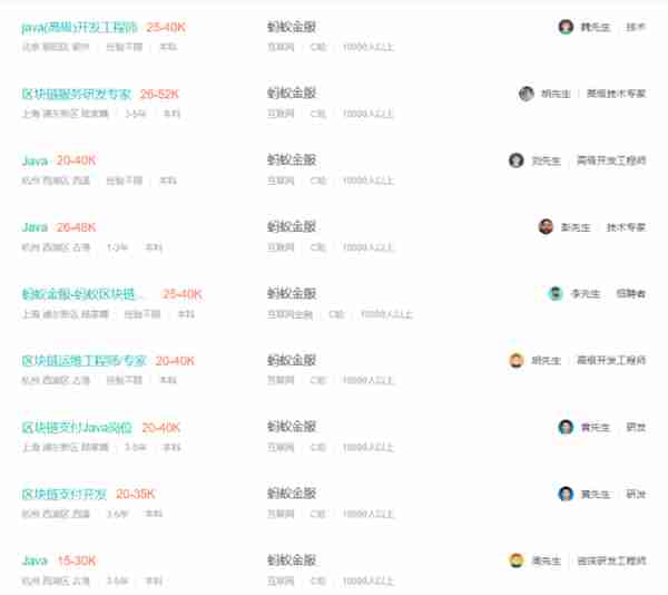 在某招聘网站上,蚂蚁金服对区块链行业人才求贤若渴