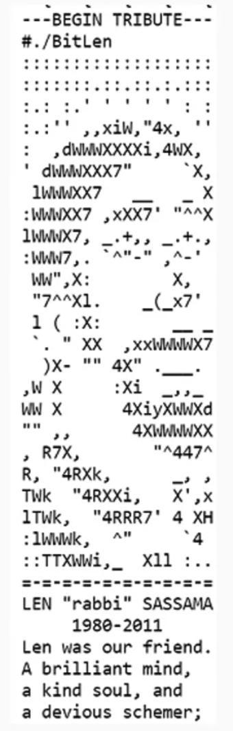 伦·萨萨曼短暂的一生堪称传奇,2011年7月3日,年仅31岁的他因为抑郁症和功能性神经障碍自杀。萨萨曼尽管成长于宾夕法尼亚州一个闭塞的小镇,但他参与了互联网早期多个重要的历史节点。