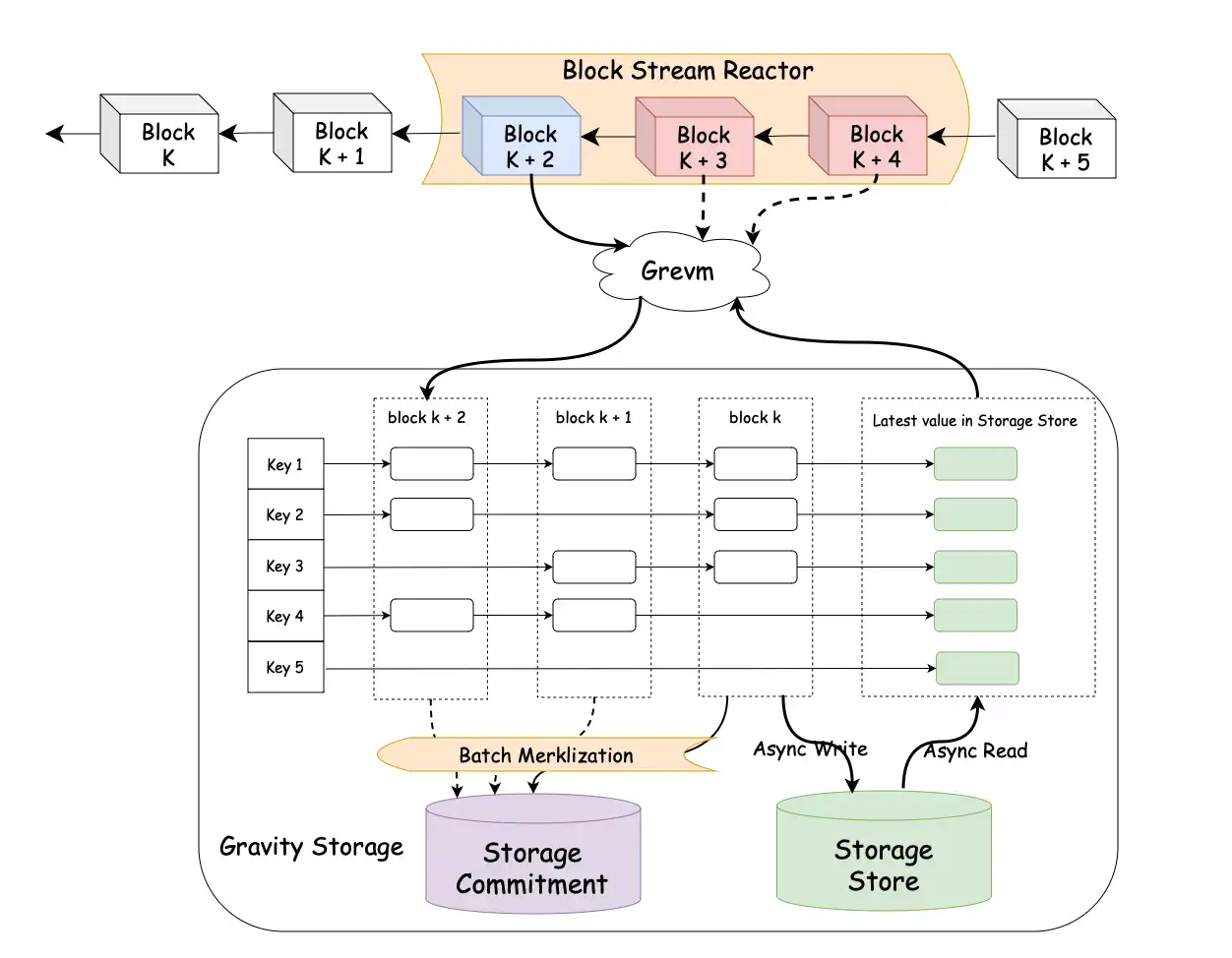 为了满足高性能区块链对大规模数据管理的需求,Gravity Store 作为一个优化的多版本存储层应运而生。它基于 reth 的设计,reth 已经通过将状态提交存储和状态数据存储分离来减少状态**问题,同时**了数据读写的开 销。然而,Gravity reth 的执行层需要进一步支持并行处理和异步状态提交,提出了更多的技术需求。
