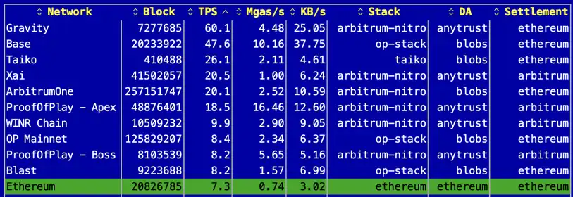 这一预测得到了 Gravity Alpha Mainnet 的实践数据支持。作为我们测试中的 Layer 2 网络,Gravity Alpha Mainnet 的忠诚点交易显示其吞吐量可以稳定达到 400 万 gas/s,验证了前述估算的准确性。