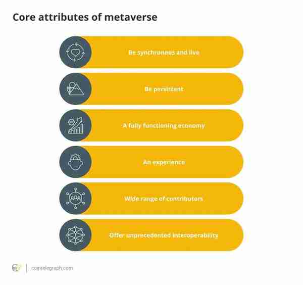 关于元界最流行的想法来自科幻小说。在这种情况下,Metaverse 经常被描述为一种数字“嵌入”互联网——一种现实现实的体现,但它植根于虚拟(通常是主题公园般的)世界。因此,元界的核心属性可以确定为: