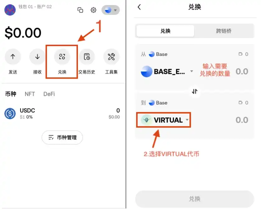 无论是在 Virtuals 内盘还是外盘交易 AI 代理**,都需要使用 Virtuals 协议** VIRTUAL,因此**步需要购买 VIRTUAL 并存入 Base 链。目前 VIRTUAL 已经上线了 Bybit、Gate.io 和 Bitget 等交易所,用户可直接在交易所购买并提币到链上。