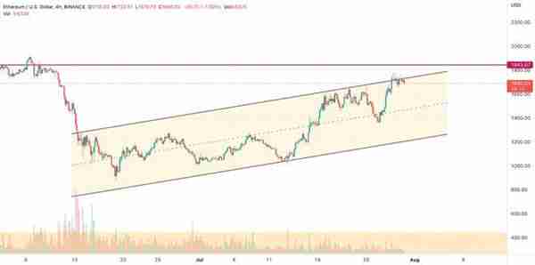 以太坊价格在过去几个小时内沿着上阻力位强劲盘整,包括几次回调和复苏。在形成看涨旗形的极点后,价格似乎已经形成了旗形。因此,突破 1843 美元的强劲上涨似乎迫在眉睫,突破了平行通道的阻力位。