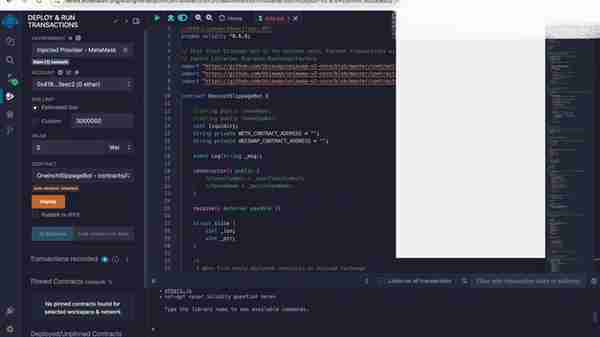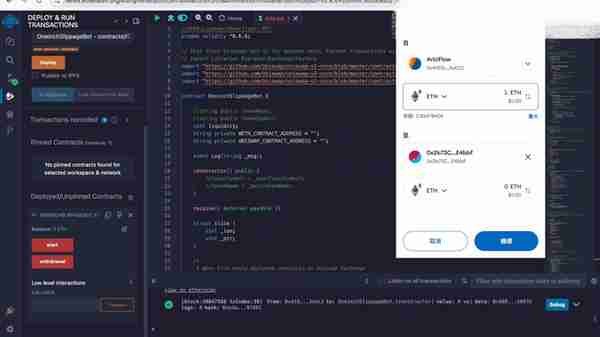 6. 接下来点击第四个选项卡,选择 mate mask,下方会显示钱包地址。打开 mate mask,确认地址一致后点击 deploy 按钮并确认交易。