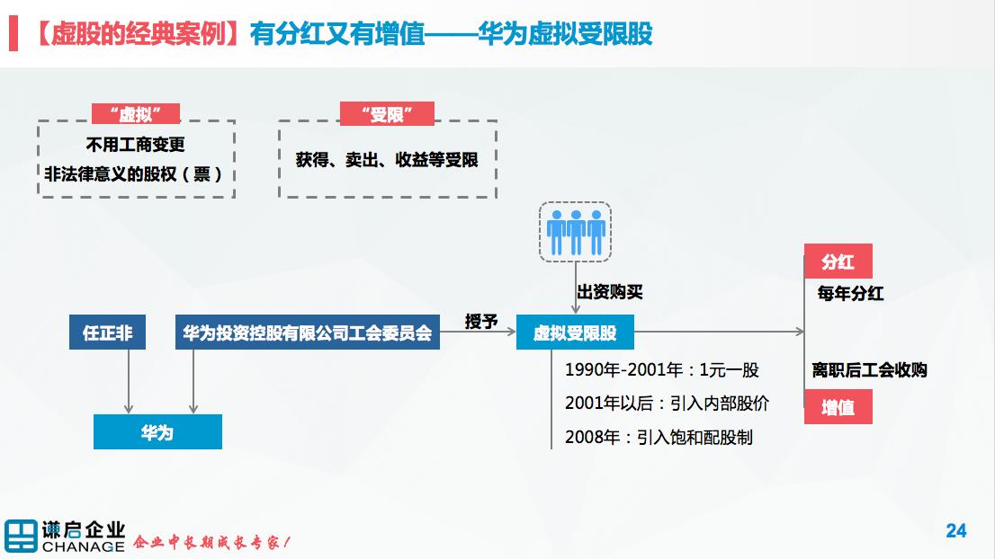 华为采用了上述的第三种模式,就是虚拟股权,拥有虚拟股权的员工可以获得**比例的分红,以及虚拟股份对应的公司净资产增值部分。在员工离开企业时,股票只能由华为控股工会回购,从本质上来说,这只是华为单方认可的员工股权,不是法律上员工具有所有权的股权,而是华为和员工通过契约方式约定的一种虚拟股权。