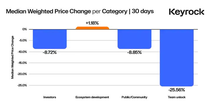 · 生态系统发展解锁的**性**,而团队解锁则始终导致价格**幅度的下跌