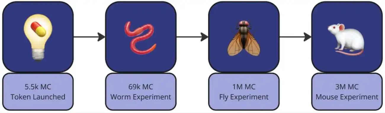 在 Pump.science 上,提交测试干预措施的药品开发商与科学家需要支付**数量的 SOL 作为实验费用。这些 SOL 将用于购买**批**,待方案达到**市值阈值后,便会在 Wormbot 平台上进行实验。这里先提下 Wormbot,Wormbot 是一个低成本、快速实验平台,用于以低廉的成本测试大量潜在的长寿疗法。