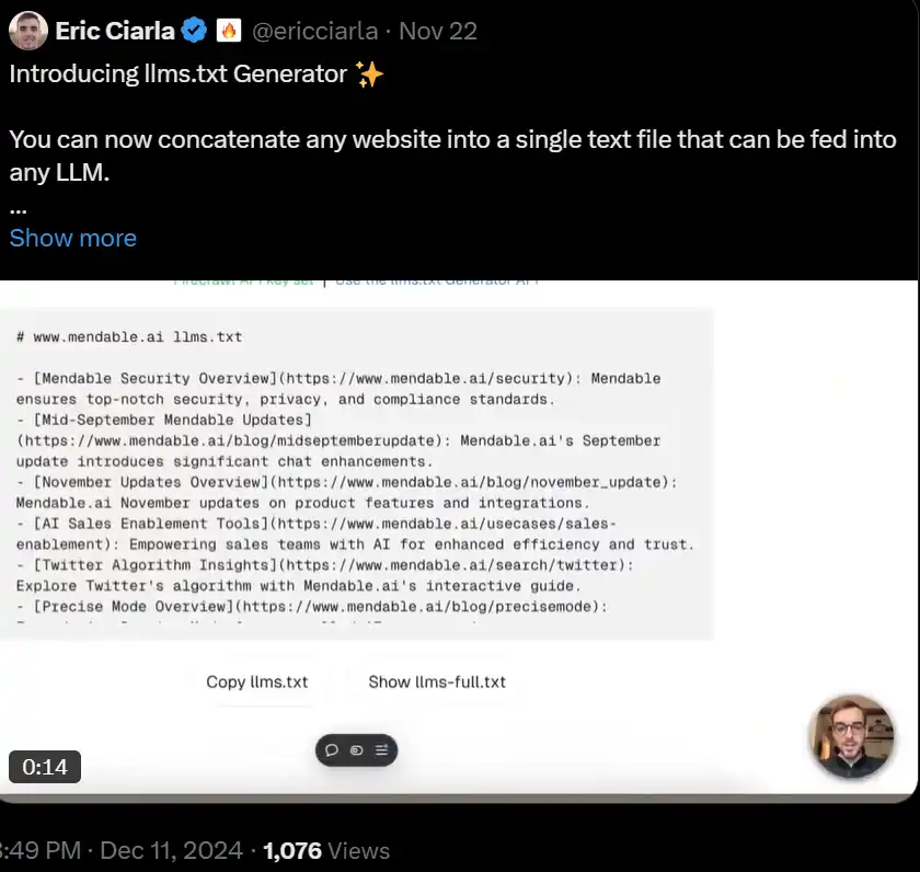 无代码的 llms.txt 生成器:将**网站转换为适合 LLM 的文本。