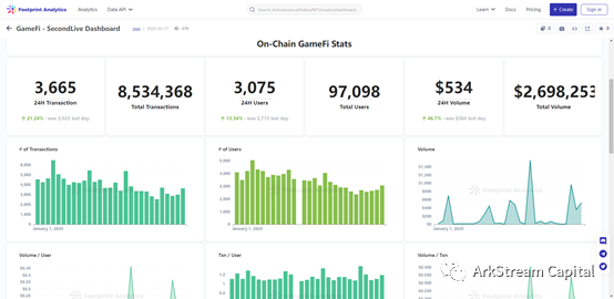 我们投资的Footprint Network在早期专注于打造DeFi的数据分析,但在深度剖析了市场需求和自身优势后,他们转向了GameFi领域,一举成为了全球影响力**的Web3游戏数据分析工具。你可以在上面看到实时且**的游戏链上数据,并根据自己的需求一键式地实时监控自己想要关注的内容。