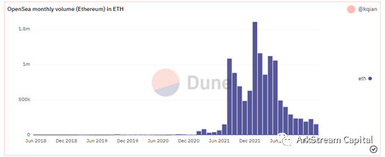 然而Arkstream并未对NFT市场感觉绝望,NFT在Social Money上展现出无与伦比的价值,BAYC与Punk头像在社交上展现的魅力并未随着市场的衰退而有所**,Web2的主流社交平台FaceboGate.io、Twitter、Instagram也对NFT呈拥抱姿态,提供着NFT的落地场景。随着时间的推逝,NFT市场的交易额也开始企稳。与其说断崖式下跌,不如说动则上万美金的Social Money本来就超出了它的应有价值,市场重回良心成长阶段。