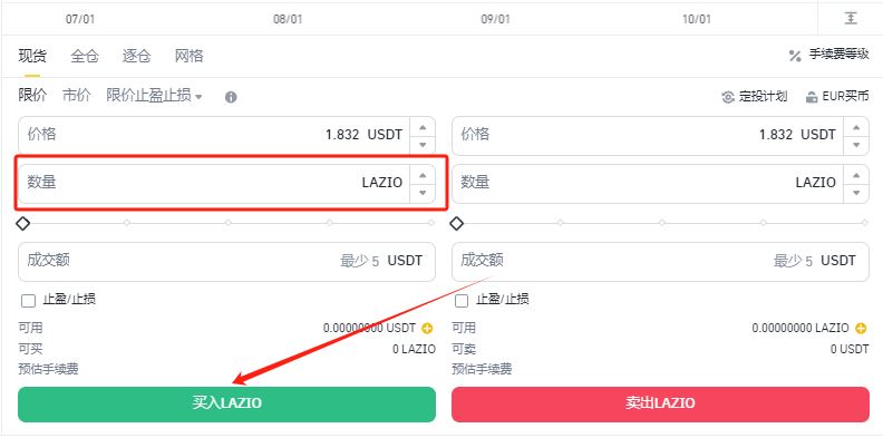 8、在右上角搜索框搜索LAZIO,选择LAZIO/USDT交易对,可以看到LAZIO实时行情