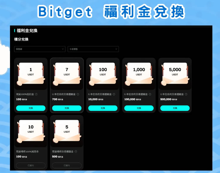 累积的福利金积分可以用来换取合约交易体验金、仓位体验金等福利,详请可以参考Bitget 官网说明。