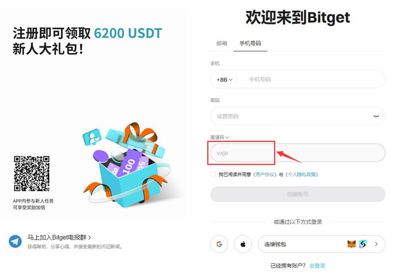 在开户时,怎么输入Bitget 推荐邀请码 vxje 注册?
