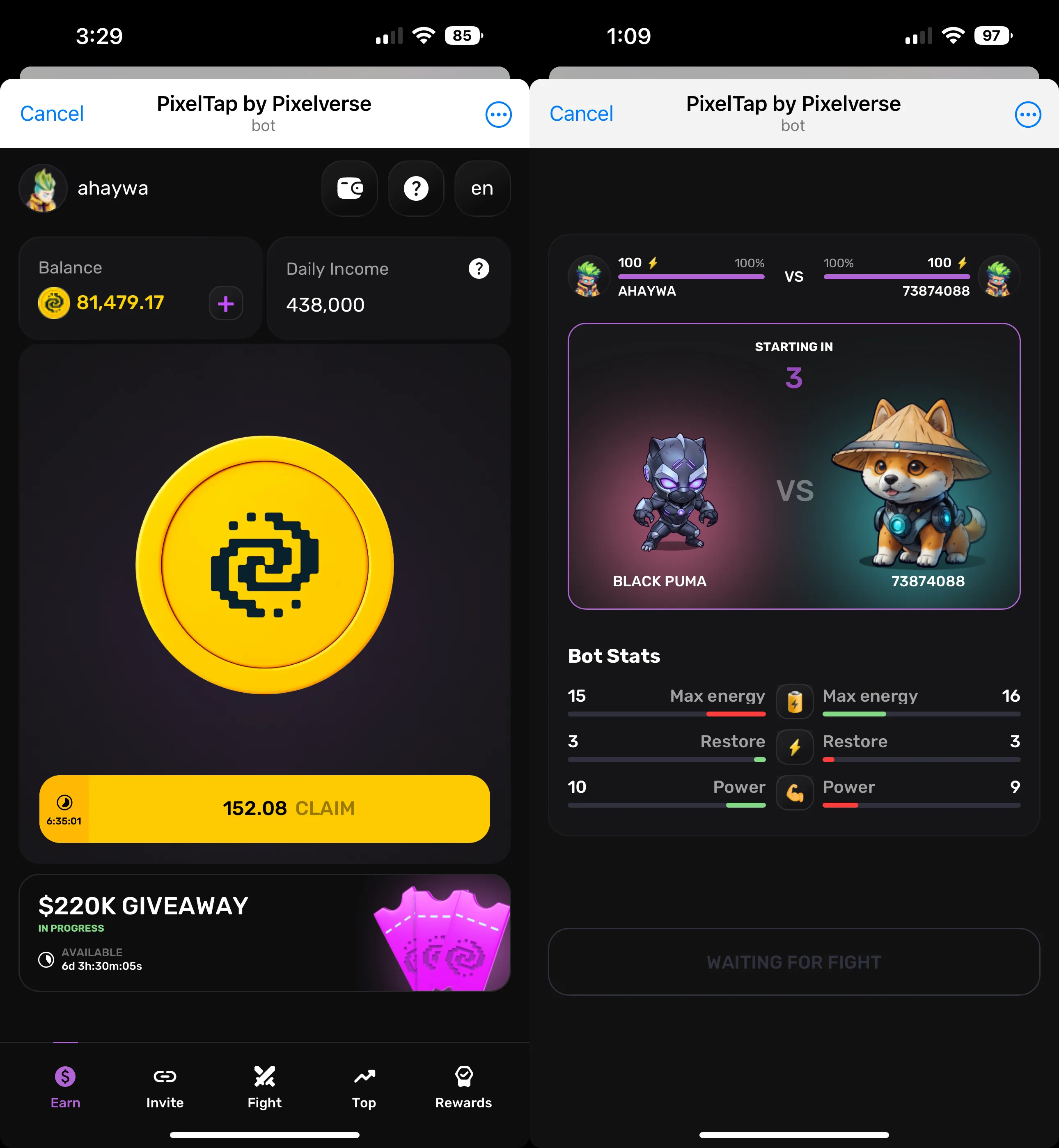 PixelTap是一款点击游戏与战斗相结合的游戏,由名为Pixelverse的项目开发,该项目正在开发一款更大的赛博朋克主题探索和制作游戏,但首先选择推出这款 Telegram 游戏。这款迷你应用可让您赚取游戏币,然后使用它们购买和升级机器人,然后您可以将其带入战斗。