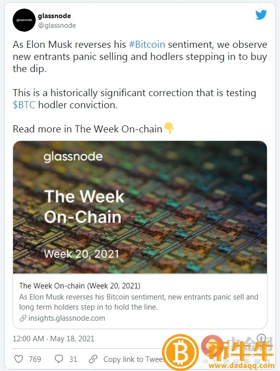 Glassnode在其报告中指出:“不幸的是,马斯克的上述一系列言论导致了市场的普遍混乱。但是,根据链上的数据,我们可以观察到一个明显的分叉反应。市场新进入者恐慌性抛售并实现亏损,而长期霍德勒比特币昨日的瀑布插针与年的牛市回落相比有何不同?似乎相对不受这一消息的影响。”