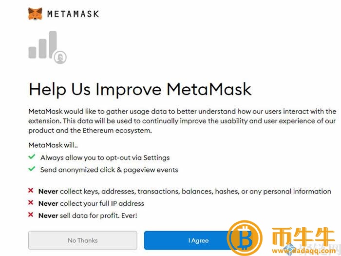 创建钱包——I Agree——创建密码——备份密语,到目前为止,你的小狐狸钱包已经创建完毕。