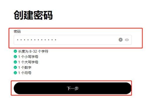 5、设置符合要求的密码,点击【下一步】,即可完成账户创建