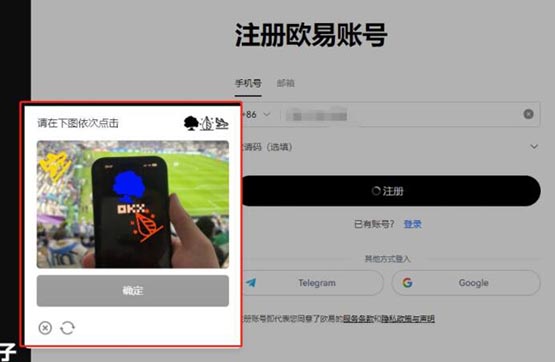 1、在欧易交易所(点击注册)首页点击【注册】进入注册欧易账号页面,选择【手机号】,输入手机号,点击【注册】即可