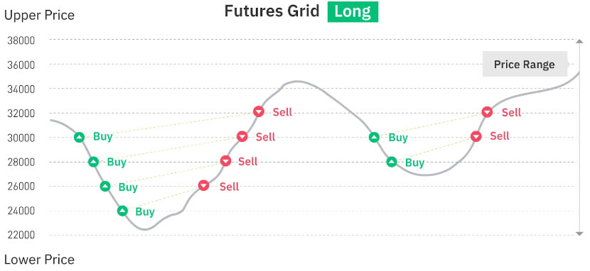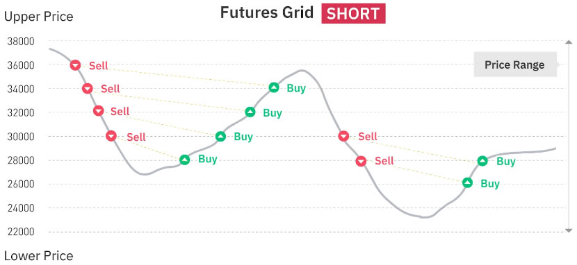 顾名思义,合约网格机器人与现货网格机器人类似,不同之处在于合约网格机器人在合约市场中运行。它会通过在指定的价格区间内下达买入和卖出订单来自动执行交易。它们的主要区别在于合约网格机器人使用杠杆交易,可以放大收益与风险。即使没有标的资产可出售,也可通过这种方式开立空头头寸。