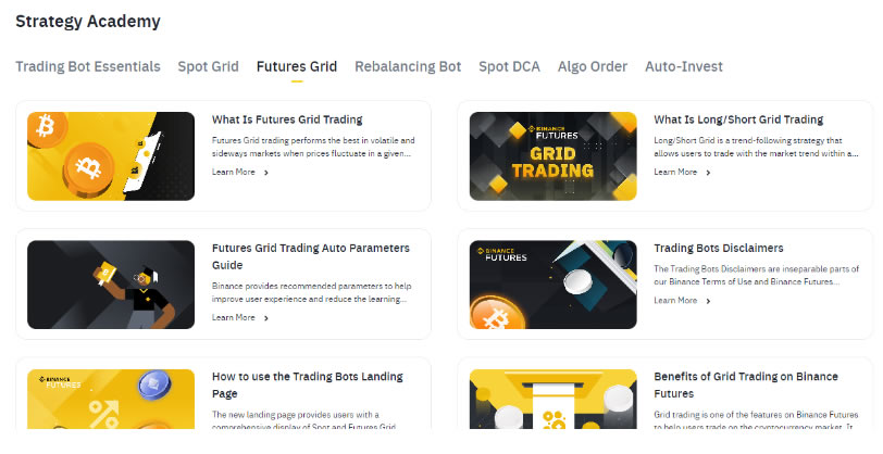 有关不同机器人和策略的更多详细信息,请向下**至交易机器人落地页底部,查看策略学院和常见问题。