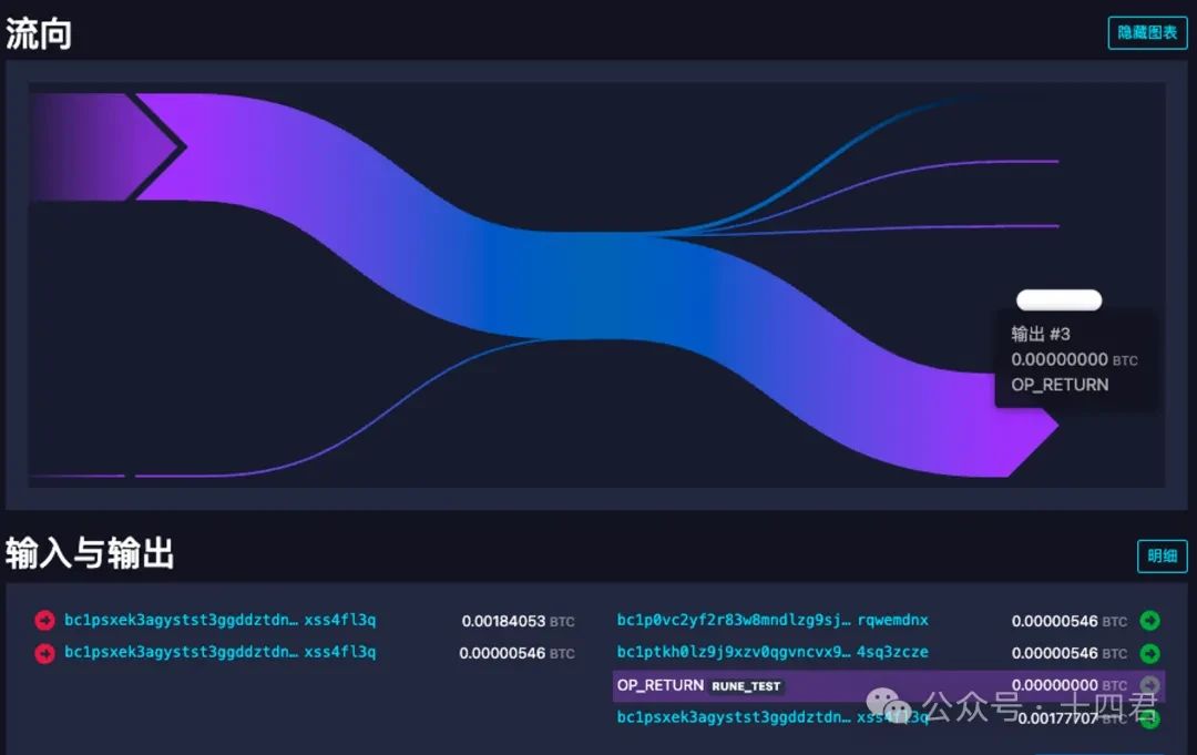具体来说,当一笔交易的 op_Return 里,信息解码之后能够呈现 edicts 的信息,且格式正确,那么链下的解析器,就会计算出该用户的资产发生了转移,其中的 output 就是转移的目标地。