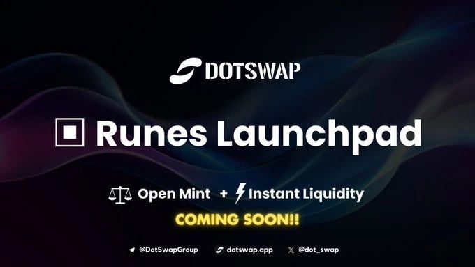 DotSwap 是比特币上的原生 DEX,目前支持 BRC 20 和 ARC 20 的 AMM swap。同时也宣布待 Runes 资产的 mint 及 swap 功能。目前已经在官网上线 mint 工具。