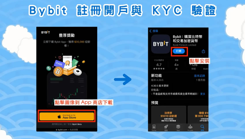注册完成后你会跳转到Bybit 页面,他会提醒你下载App 应用程式,点击按钮跟着步骤操作即可。安卓手机APP官方地址。