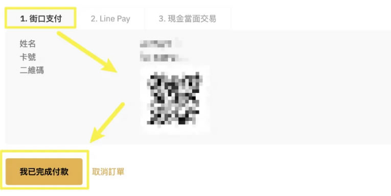 接着在15 分钟内透过指定方式汇款,例如这家可用街口、LinePay 或面交。