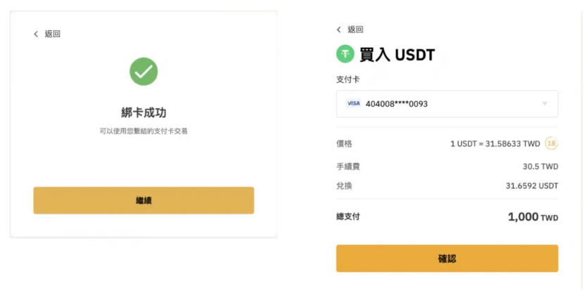 - 快捷买币:到帐速度快,但手续费高,适合小额入金,或是有高额度海外消费回馈的人使用