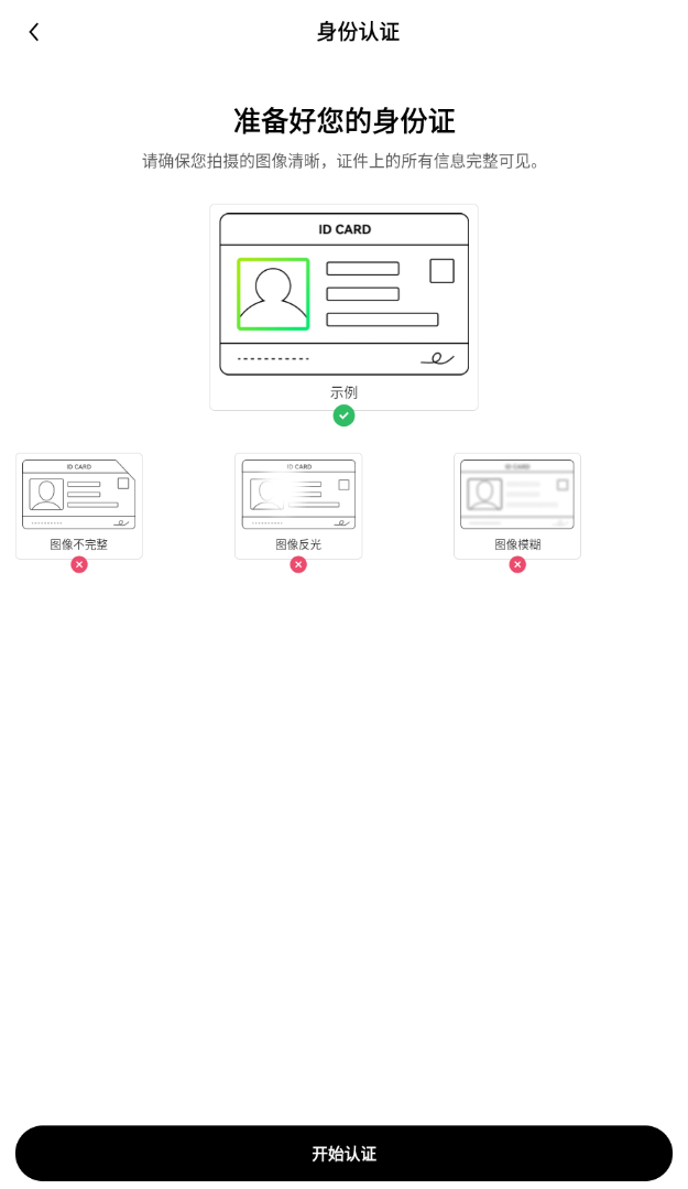 登录账号后,点击左上角个人**图标--【个资料和设置】--【个人资料】--【身份认证】,进入身份认证页面。如果未完成认证,请点击【立即认证】,您需要上传证件照,如身份证的正反面,并通过人脸识别,根据页面提示完成证件上传和实人认证。