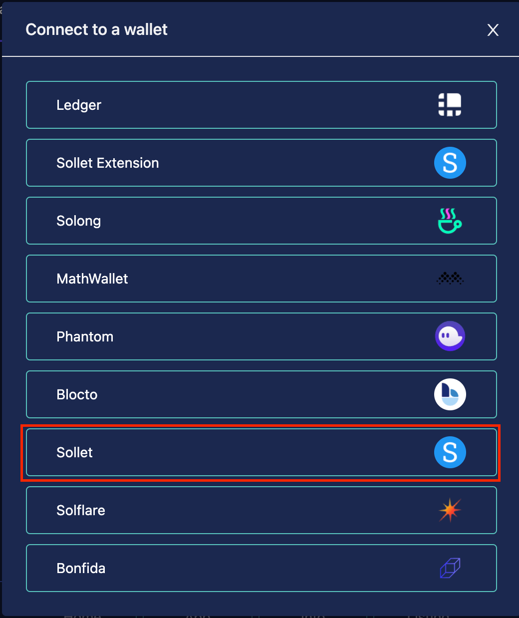 选择「Sollet」,或是你有上列其他的钱包也可以。