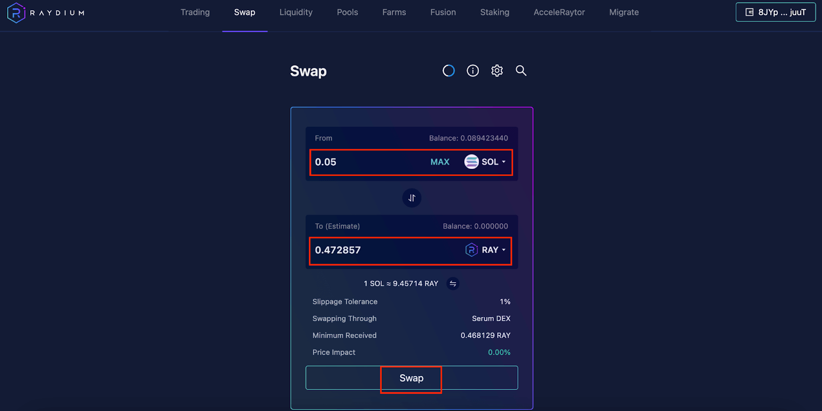 以下笔者以将SOL 兑换成RAY 做示范: