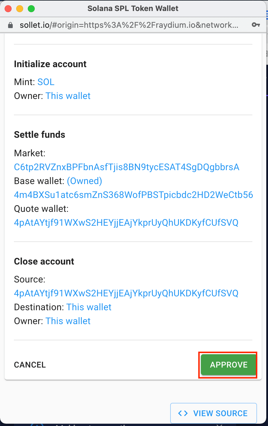 这时Sollet 会再跳出确认视窗,按下「APPROVE」。