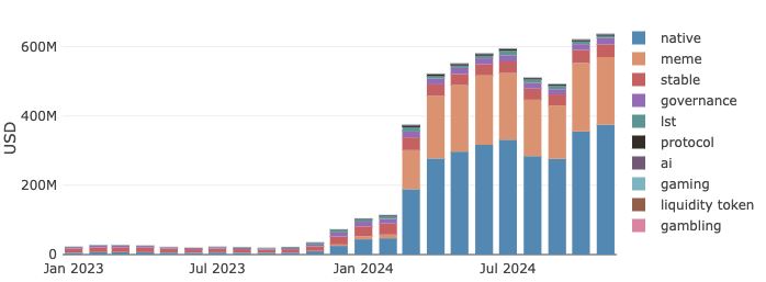 迷因币潜在的惊人收益吸引大量的新用户和资金进入 Solana,进而带动整体生态的蓬勃发展,而不仅只是局限于迷因币领域而已。尤其去年Solana 流动性质押协议龙头Jito 发放大额空投予其忠实用户,因此有不少人在玩迷因币的同时,亦积极参与Solana 生态中其他当时尚未发币的项目如Marginfi、Kamino、Magice Eden、Backpack 等等。