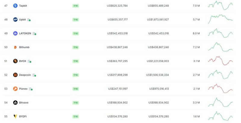 根据Coingecko 数据,派网Pionex 在所有加密货币交易所中排名53,安全评分为7,和韩国知名交易所Upbit 相当。