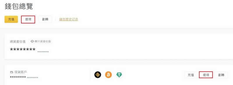 进入钱包后,在钱包总览下方,或现货帐户右边点选「提现」,接着就能开始选择币种与输入金额。